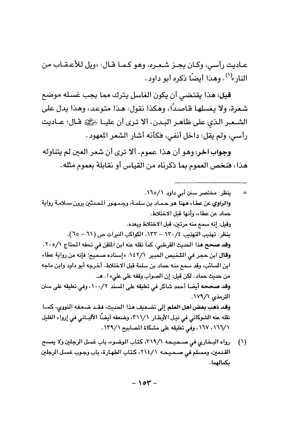 عاديت رأسي، وكان يجز شعره، وهو كما قال: «ويل للأعقاب من النار». وهذا أيضاً ذكره أبو داود.