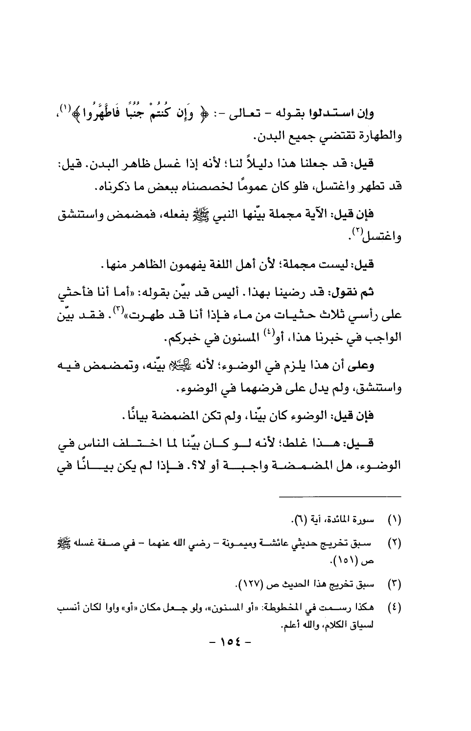 قيل: هذا غلط، لأنه لو كان بينا لما اختلف الناس في الوضوء، هل المضمضة واجبة أو لا؟ فإذا لم يكن بياناً في