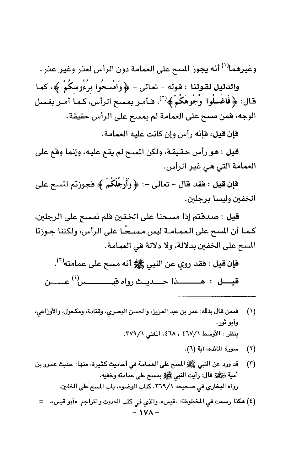 فإن قيل: فقد روي عن النبي صَلَّى اللَّهُ عَلَيْهِ وَسَلَّمَ أنه مسح على عمامته.