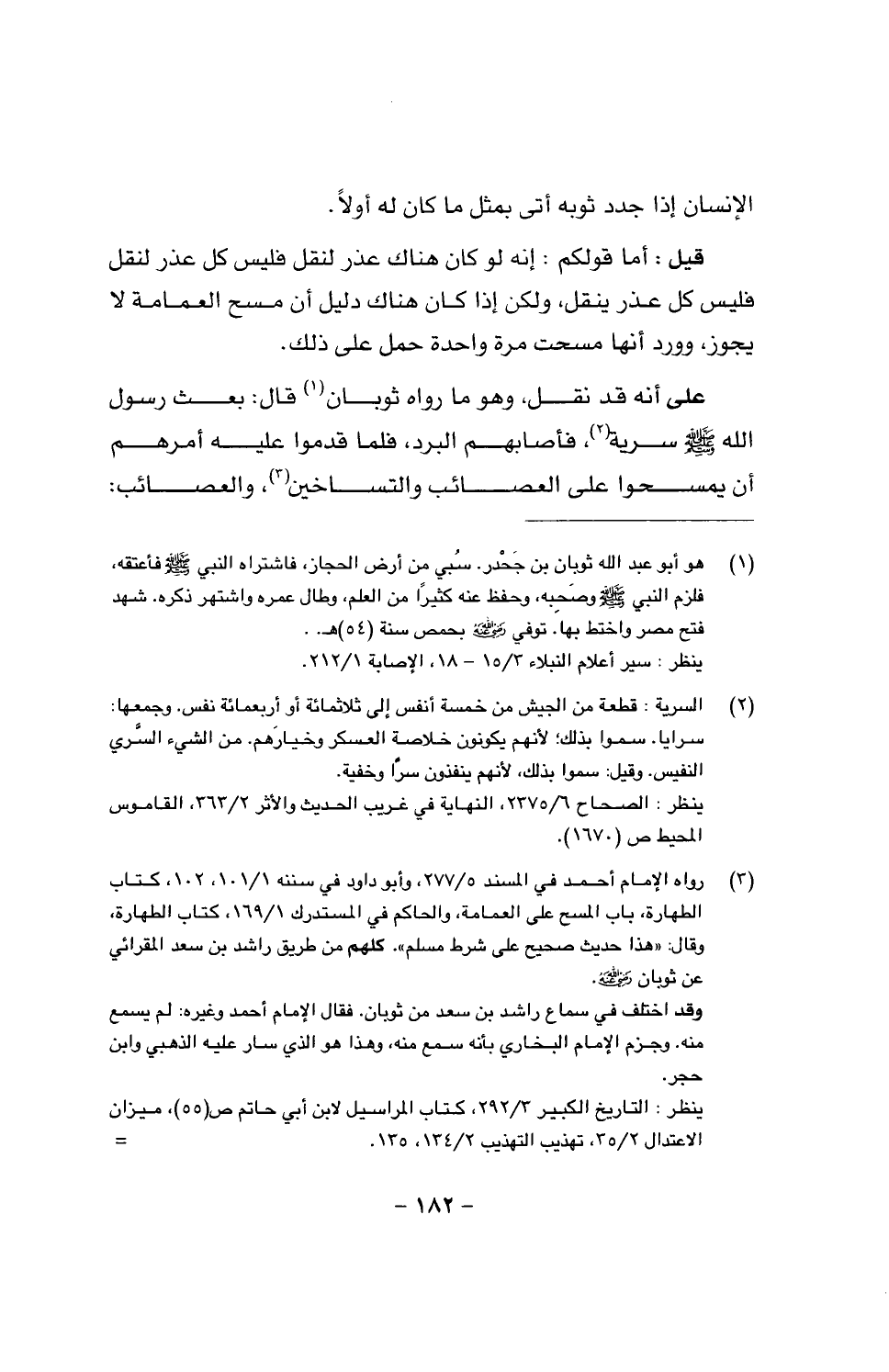 على أنه قد نقل، وهو ما رواه ثوبان، قال: بعث رسول الله صَلَّى اللَّهُ عَلَيْهِ وَسَلَّمَ سرية، فأصابهم البرد، فلما قدموا عليه أمرهم أن يمسحوا على العصائب والتساخين، والعصائب: