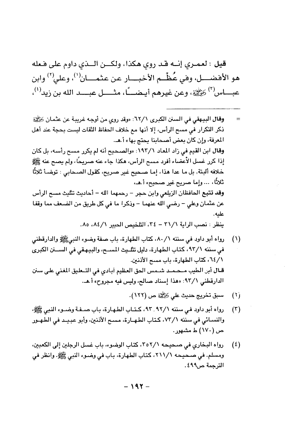 قيل: لعمري إنه قد رُوِيَ هكذا، ولكن الذي داوم على فعله هو الأفضل، وفي عُظْم الأخبار عن عثمان، وعلي، وابن عباس رضي الله عنه، وعن غيرهم أيضاً مثل عبد لله بن زيد،
