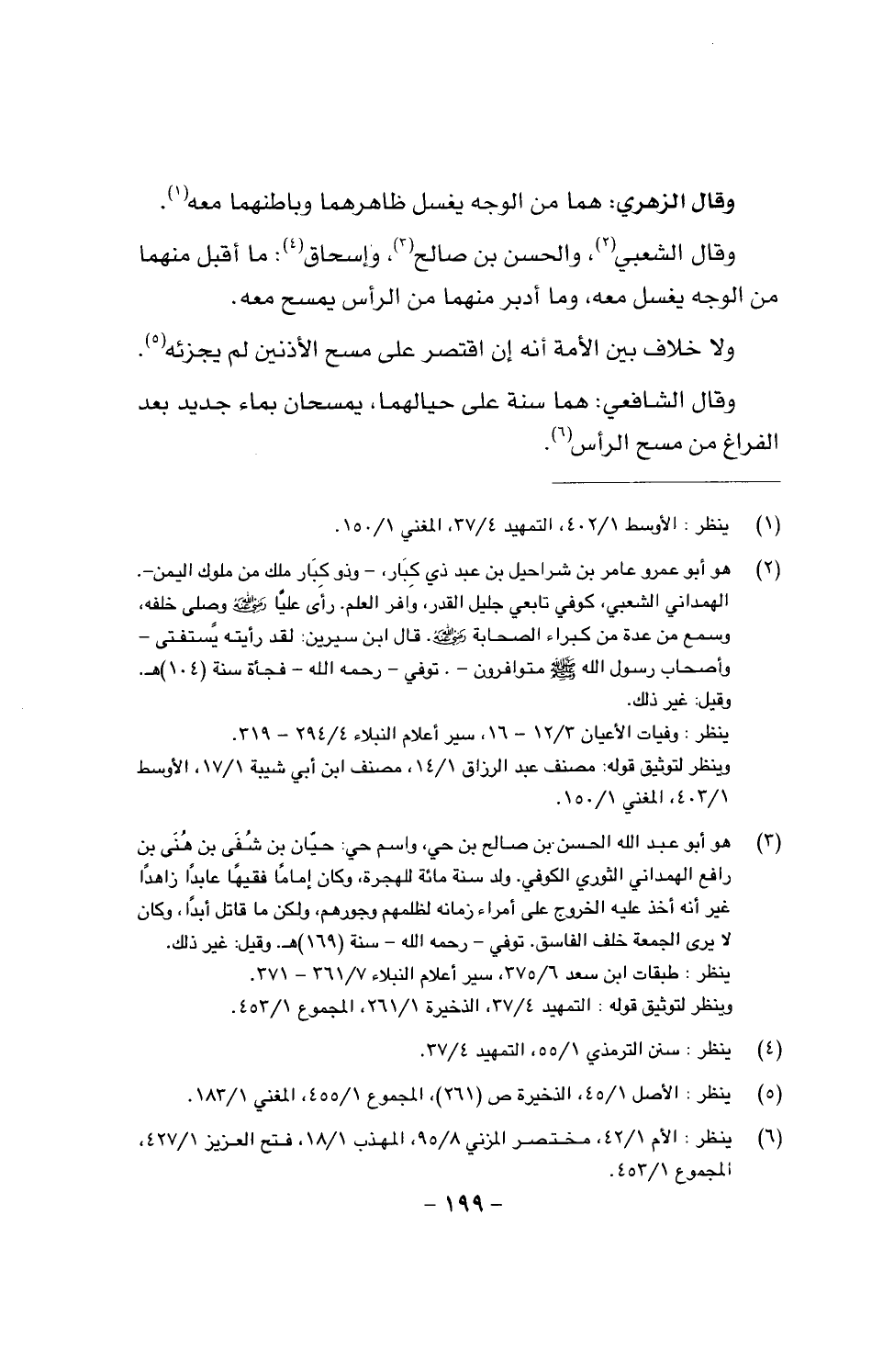 وقال الزهري: هما من الوجه يغسل ظاهرهما وباطنهما معاً، وقال الشعبي: والحسن بن صالح، وإسحاق، ما اقلب منهما من الوجه يغسل معه، وما أدبر منهما من الرأس يمسح معه.
