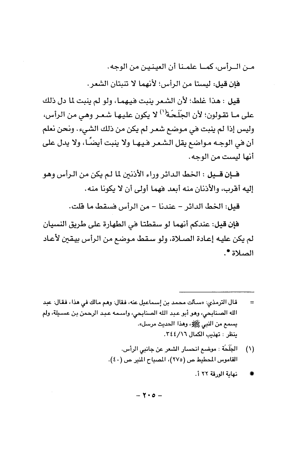 قيل: هذا غلط؛ لأن الشعر ينبت فيهما، ولو لم ينبت لما دل ذلك على ما تقولون، لأنَّ الجَلَخَة لا يكون عليها شعر وهي من الرأس، وليس إذا لم ينبت في موضع شعر لم يكن من ذلك الشيء، ونحن نعلم أن في الوجه مواضع يقل الشعر فيها ولا ينبت أيضاً، ولا يدل على أنها ليست من الوجه.