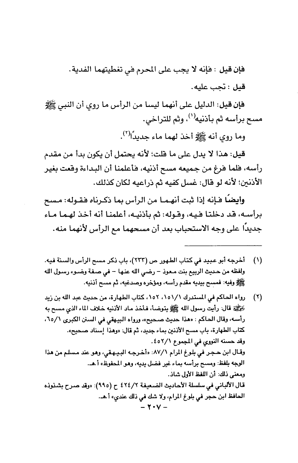 وأيضاً: إذا ثبت أنَّهما من الرأس بما ذكرناه فقوله: مسح برأسهن قد دخلتا فيه، ثم بأذنيه، أعلمنا أنه أخذ لهما ماء جديداً على وجه الاستحباب بعد أن مسحهما مع الرأس لأنها معه.