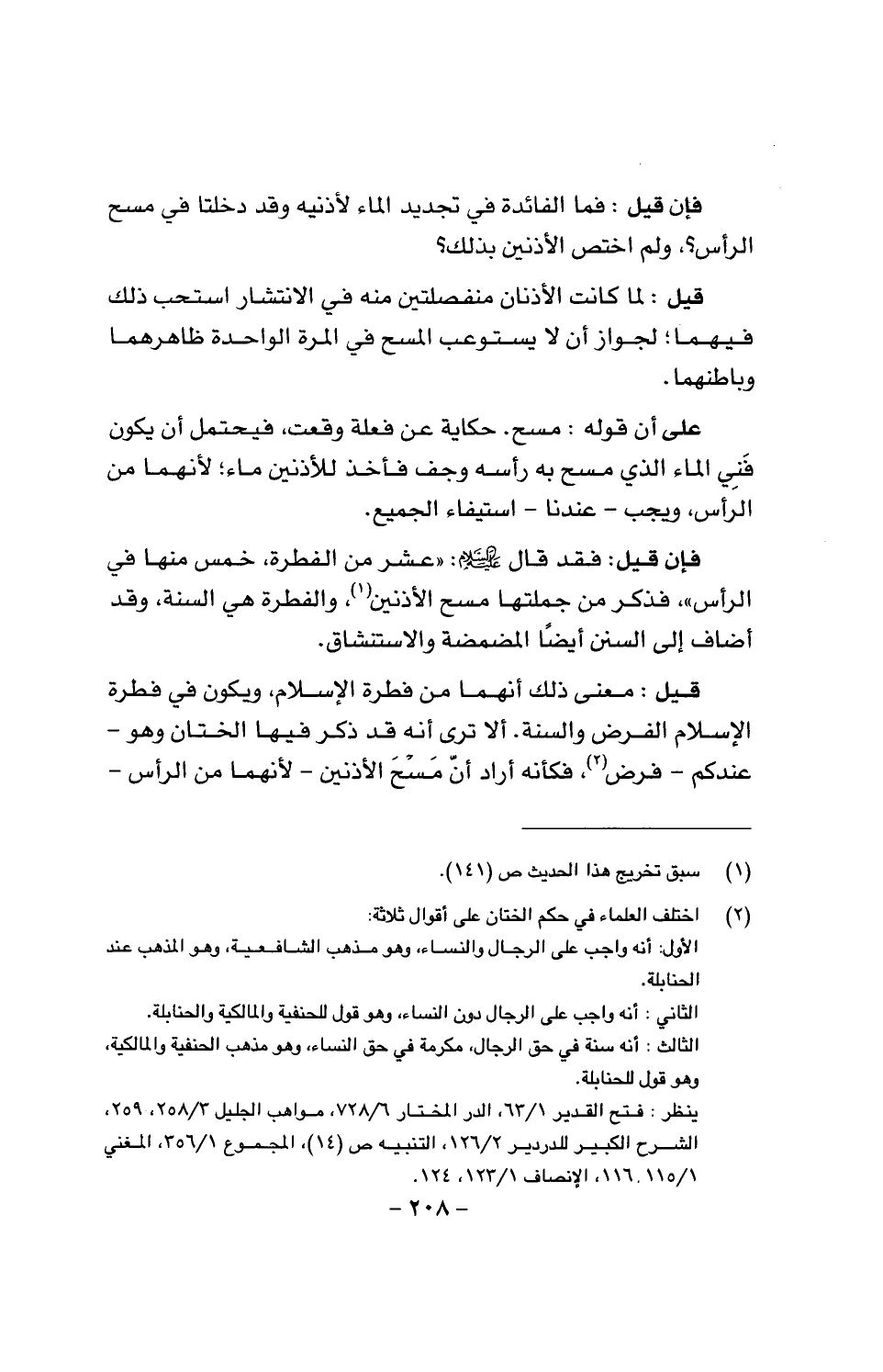 قيل: معنى ذلك أنهما من فطرة الإسلام، ويكون في فطرة الإسلام الفرض والسنة. ألا ترى أنه قد ... ذكر فيها الختان وهو - عندكم - فرض، فكأنه أراد أنَّ مَسْحَ الأذنين - لأنهما من الرأس -