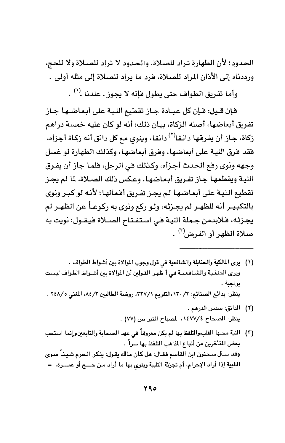 فإن قيل: فإن كل عبادة جاز تقطيع النية على أبعاضها جز تفريق أبعاضها، أصله الزكاة، بيان ذلك: أنه لو كان عليه خمسة دراهم زكاة، جاز أن يفرقها دانقاً دانقا، وينوي مع كل دانق أنه زكاة أجزأه، فقد فرق النية على أبعاضها، وفرق أبعاضها، وكذلك الطهارة لو غسل وجهه ونوى رفع الحدث أجزأه، وكذلك في الرجل فلما جاز أن يفرق النية ويقطعها جاز تفريق أبعاضها، وعكس ذلك الصاة؛ لما لم يجز بالتكبير أنه للظهر لم يجزئه، ولو ركع ونوى به ركوعاً عن الظهر لم يجزئه، فلا بدَّ من جملة النية في استفتاح الصلاة فيقول: نويت به صلاة الظهر أو الفرض.