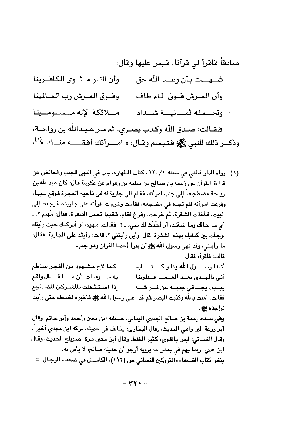فقالت: صدق الله وكذب بصري، ثم مرَّ عبد الله بن رواحة، وذكر ذلك للنبي صَلَّى اللَّهُ عَلَيْهِ وَسَلَّمَ فتبسم وقال: «امرأتك أفقه منك»،