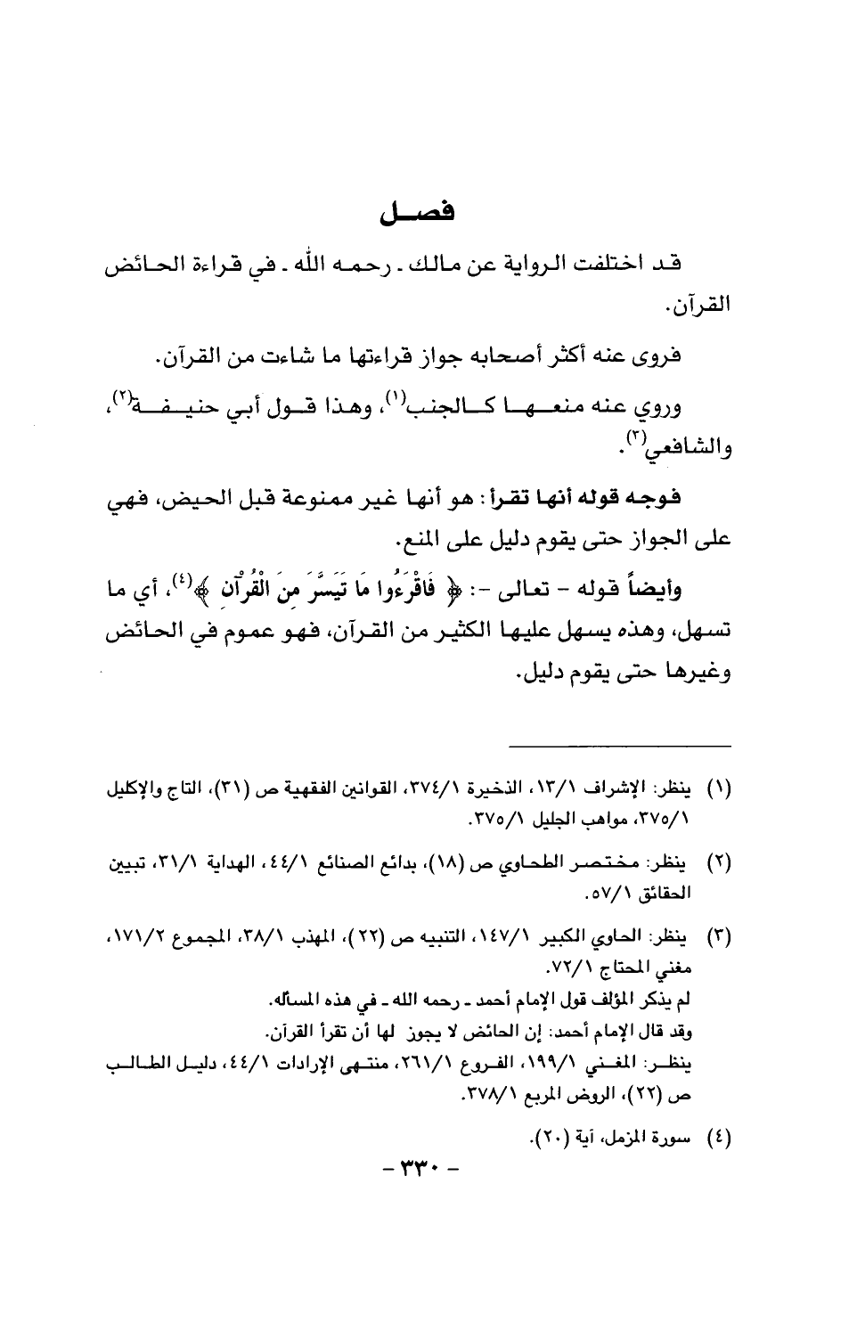 قد اختلفت الرواية عن مالك - رَحمَه الله - في قراءة الحائض القرآن.