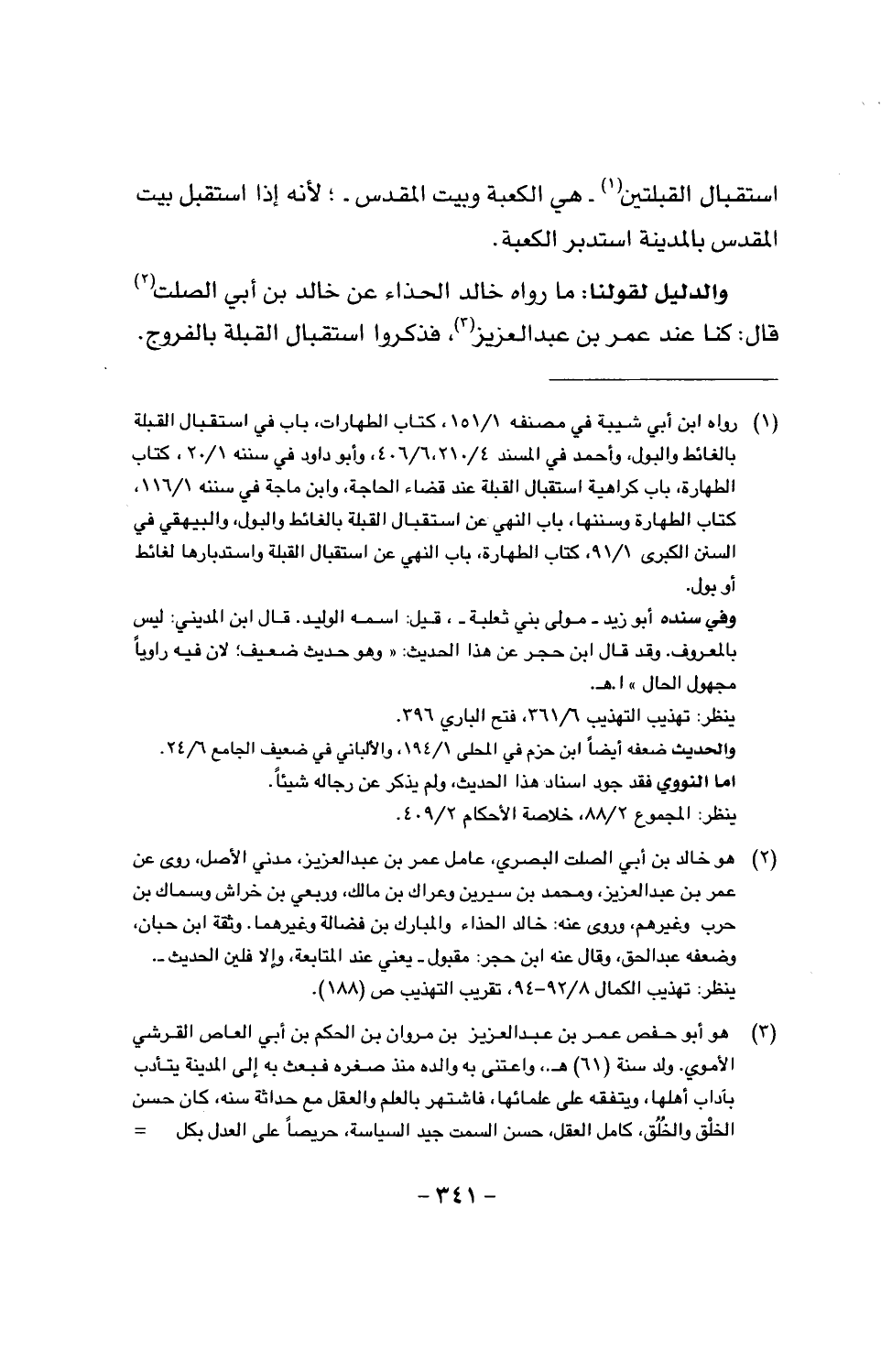 والدليل لقولنا: ما رواه خالد الحذاء عن خالد بن أبي الصلت قال: كنا عند عمر بن عبد العزيز، فذكروا استقبال القبلة بالفروج.
