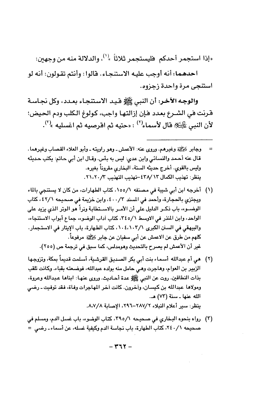 «إذا استجمر أحدكم فليستجمر ثلاثاً»، والدلالة منه من وجهين: