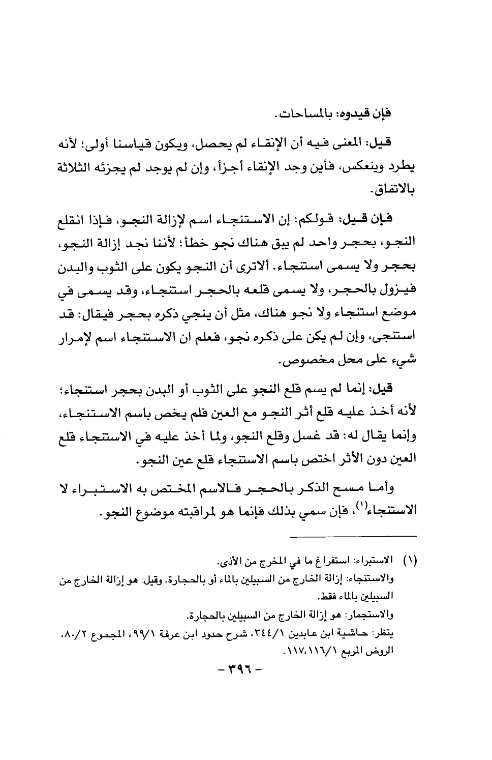 فإن قيل: قولكم: إن الاستنجاء اسم لإزالة النجو، فإذا انقلع النجو، بحجر واحد لم يبق هناك نجو خطأ؛ لأنَّنا نجد إزالة النجو بحجر ولا يسمى استنجاء، ألا ترى أن النجو يكون على الثوب والبدن فيزول بالحجر، ولا يسمى قلعه بالحجر استنجاء، وقد يسمى في موضع استنجاء ولا نجو هناك، مثل أن ينجي بحجر فيقال: قد استنجى، وإن لم يكن على ذكره نجو، فعلم أن الاستنجاء اسم لإمرار شيء على محل مخصوص.