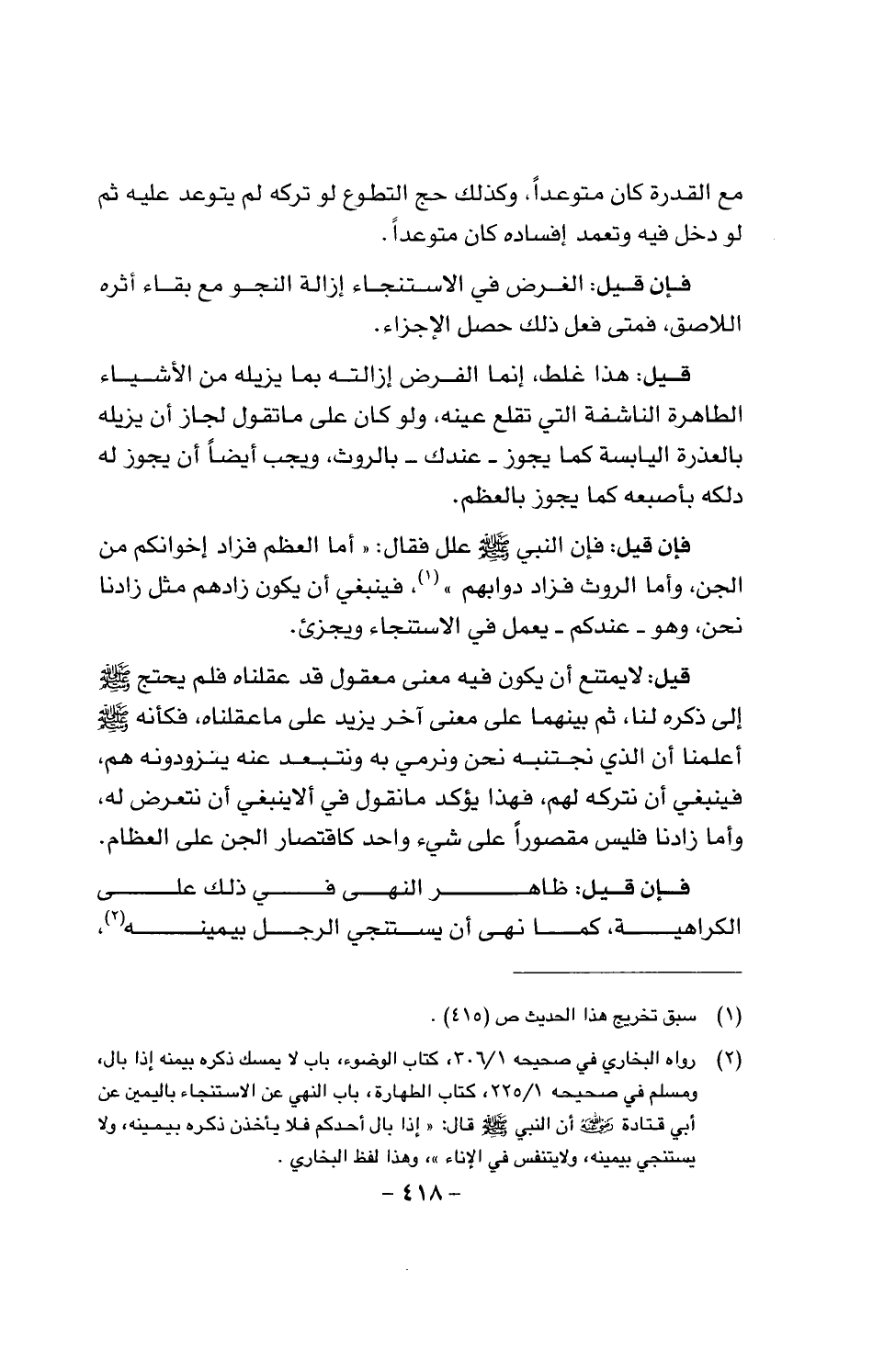 فإن قيل: فإن النبي علل فقال: «أما العظم فزاد إخوانكم من الجن، وأما الروث فزاد دوابهم»، فينبغي أن يكون زادهم مثل زادنا نحن، وهو -عندكم - يعمل في الاستنجاء ويجزئ.