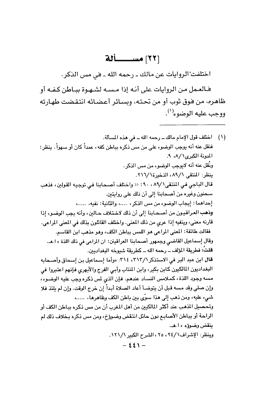 اختلفت الروايات عن مالك - رَحمَه الله - في مس الذكر.