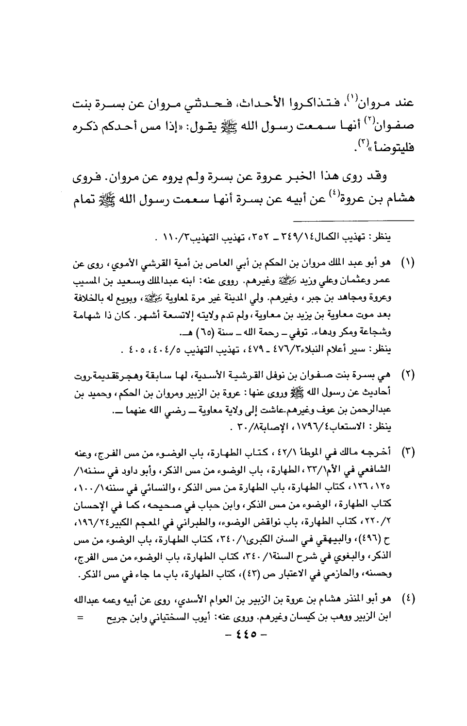 وقد روى هاذ الخبر عروة عن بسرة ولم يروه عن مروان، فروى هشام بن عروة عن أبيه عن بسرة أنها سمعت رسول الله صَلَّى اللَّهُ عَلَيْهِ وَسَلَّمَ تمام