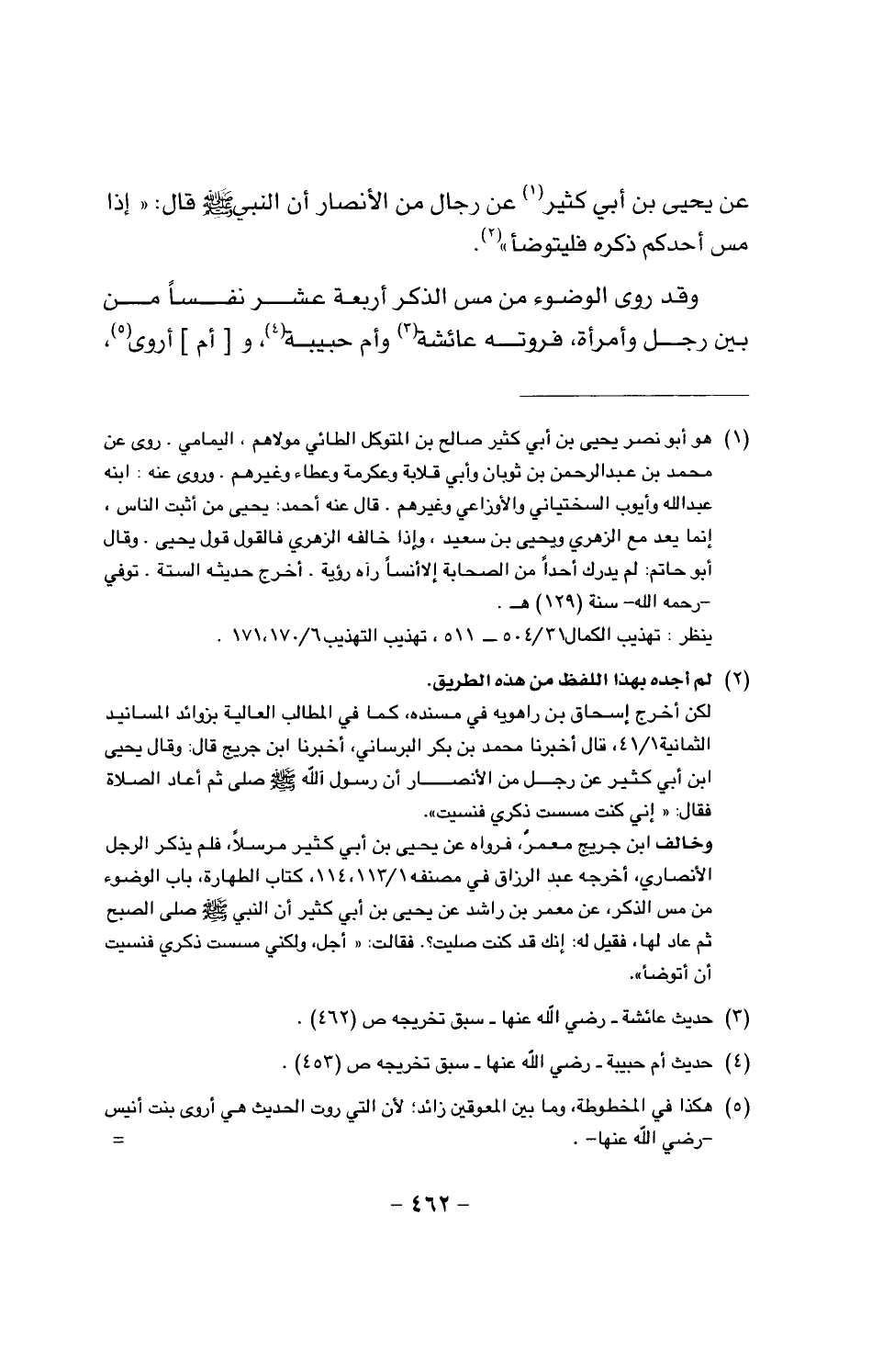 عن يحيى بن أبي كثير عن رجال من الأنصار أن النبي صَلَّى اللَّهُ عَلَيْهِ وَسَلَّمَ قال: «إنا مس أحدكم ذكره فليتوضأ».