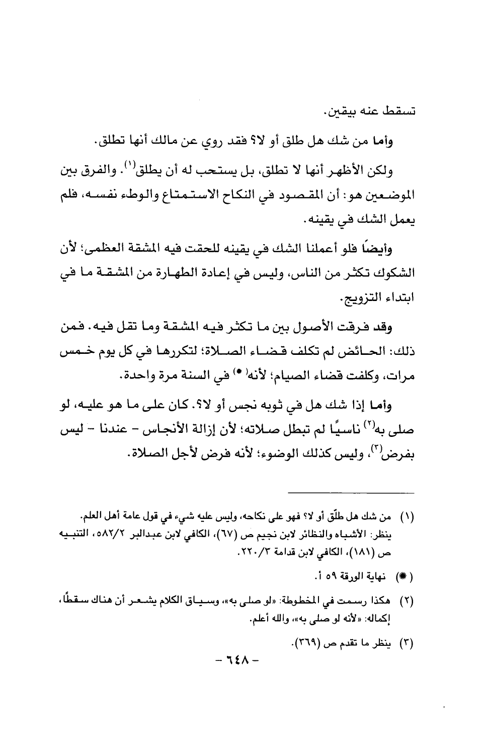 ولكن الأظهر أنها لا تطلق، بل يستجب له أن يطلق. والفرق بين الموضعين هو: أن المقصود في النكاح الاستمتاع والوطء نفسه. فلم يعمل الشك في يقينه.