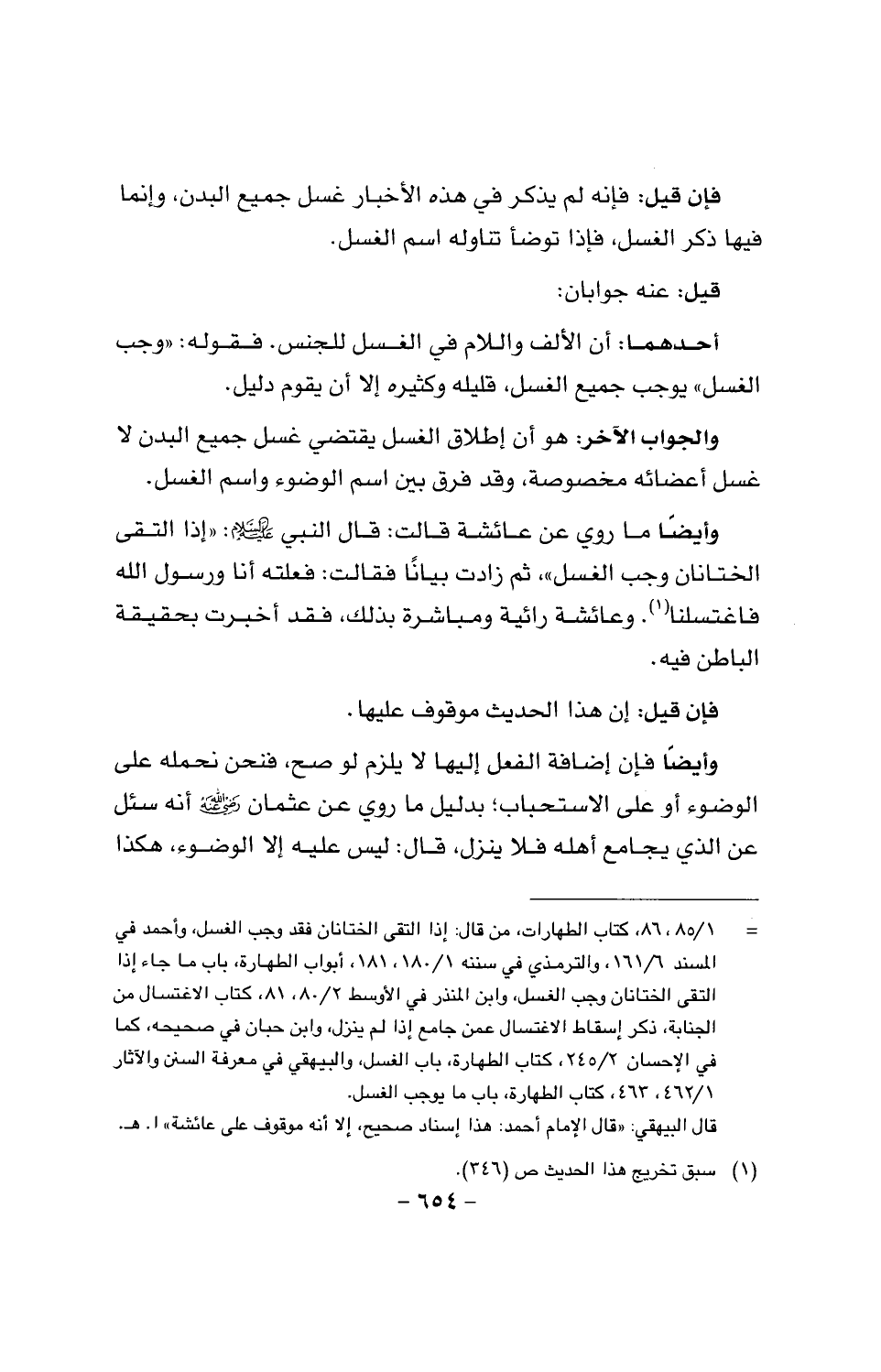 وأيضا فإن إضافة الفعل إليها لا يلزم لو صح، فنحن نحمله على الوضوء أو على الاستحباب؛ بدليل ما روي عن عثمان رضي الله عنه أنه سئل عن الذي يجامع أهله فلا ينزل، قال: ليس عليه إلا الوضوء، هكذا سمعت رسول الله صَلَّى اللَّهُ عَلَيْهِ وَسَلَّمَ.