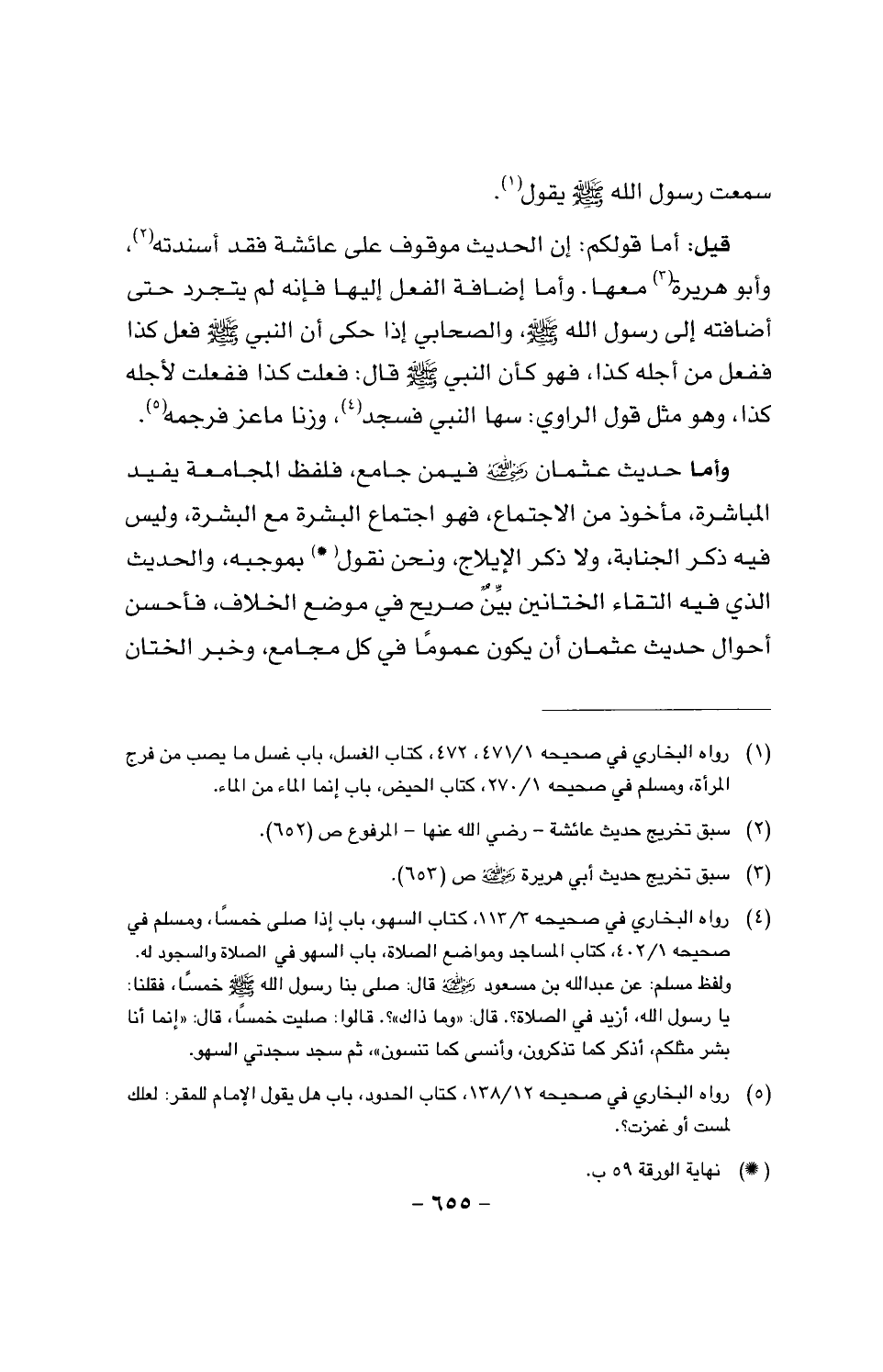 قيل: أما قولكم: إن الحديث موقوف على عائشة فقد أسندته، وأبو هريرة معها. وأما إضافة الفعل إليها فإنه لم يتجرد حتى أضافته إلى رسول الله صَلَّى اللَّهُ عَلَيْهِ وَسَلَّمَ، والصحابي إذا حكى أن النبي صَلَّى اللَّهُ عَلَيْهِ وَسَلَّمَ فعل هذا ففعل من أجله كذا، فهو كأن النبي صَلَّى اللَّهُ عَلَيْهِ وَسَلَّمَ قال: فعلت كذا ففعلت لأجله كذا، وهو مثل قول الراوي: سها النبي فسجد، وزنا ماعز فرجمه.