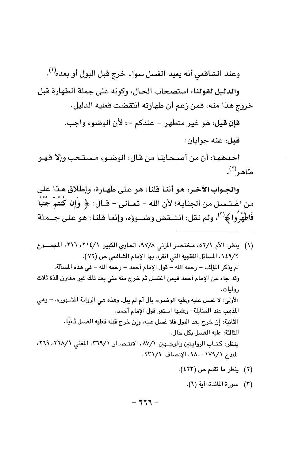 والجواب الآخر: هو أننا قلنا: هو على طهارة، وإطلاق هذا على من اغتسل من الجنابة؛ لأن الله - تعالى - قال: {وإن كنتم جنبا فاطهروا}، ولم نقل: انتقض وضوؤه، وإنما قلنا: هو على جملة الطهارة بغسل الجنابة المتقدم.