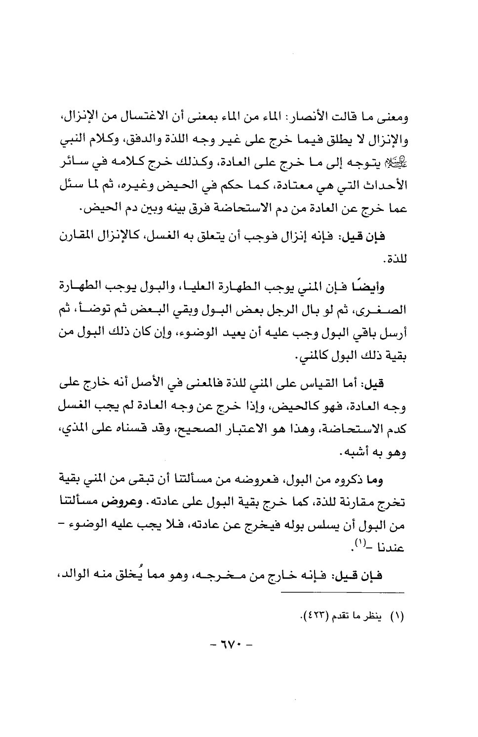 وما ذكروه من البول، فعروضه من مسألتنا أن تبقي من المني بقية تخرج مقارنة للذة، كما خرج بقية البول على عادته. وعروض مسألتنا من البول أن يسلس بوله فيخرج عن عادته، فلا يجب عليه الوضوء - عندنا -.