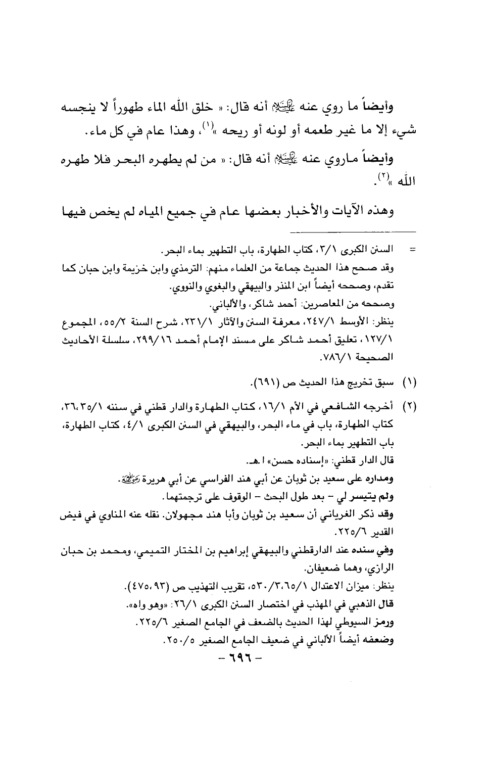 وأيضا ما روي عنه عليه السلام أنه قال: (من لم يطهره البحر فلا طهره الله).