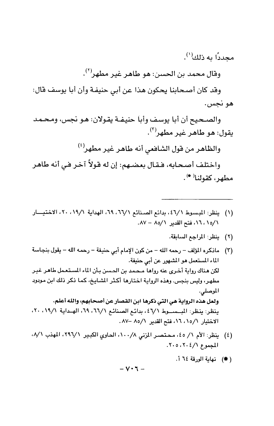واختلف أصحابه، فقال بعضهم: إن له قولا آخر في أنه طاهر مطهر، كقولنا.