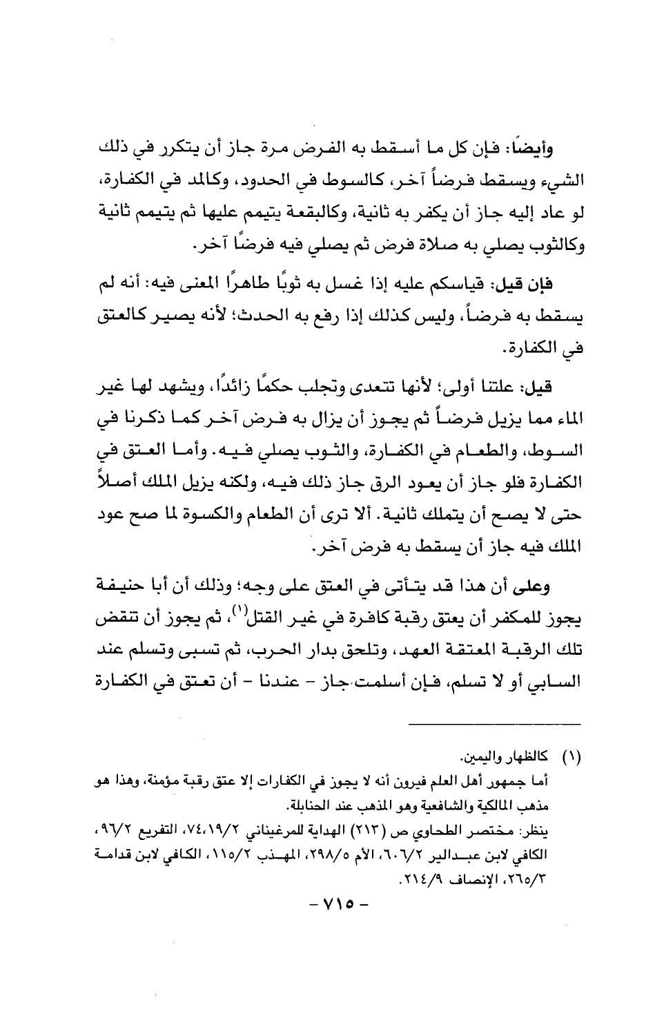 وعلى أن هذا قد يتأتى في العتق على وجه؛ وذلك أن أبا حنيفة يجوز للمكفر أن يعتق رقبة كافرة في غير القتل، ثم يجوز أن تنقض تلك الرقبة المعتقة العهد، وتلحق بدار الحرب، ثم تسبى وتسلم عند السابي أو لا تسلم، فإن أسلمت جاز - عندنا - أن تعتقد في الكفارة