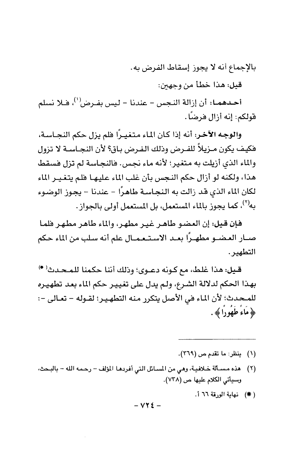 قيل: هذا غلط، مع كونه دعوى؛ وذلك أننا حكمنا للمحدث بهذا الحكم لدلالة الشرع، ولم يدل على تغيير حكم الماء بعد تطهيره للمحدث؛ لأن الماء في الأصل يتكرر منه التطهير؛ لقوله - تعالى - {ماء طهورا}.