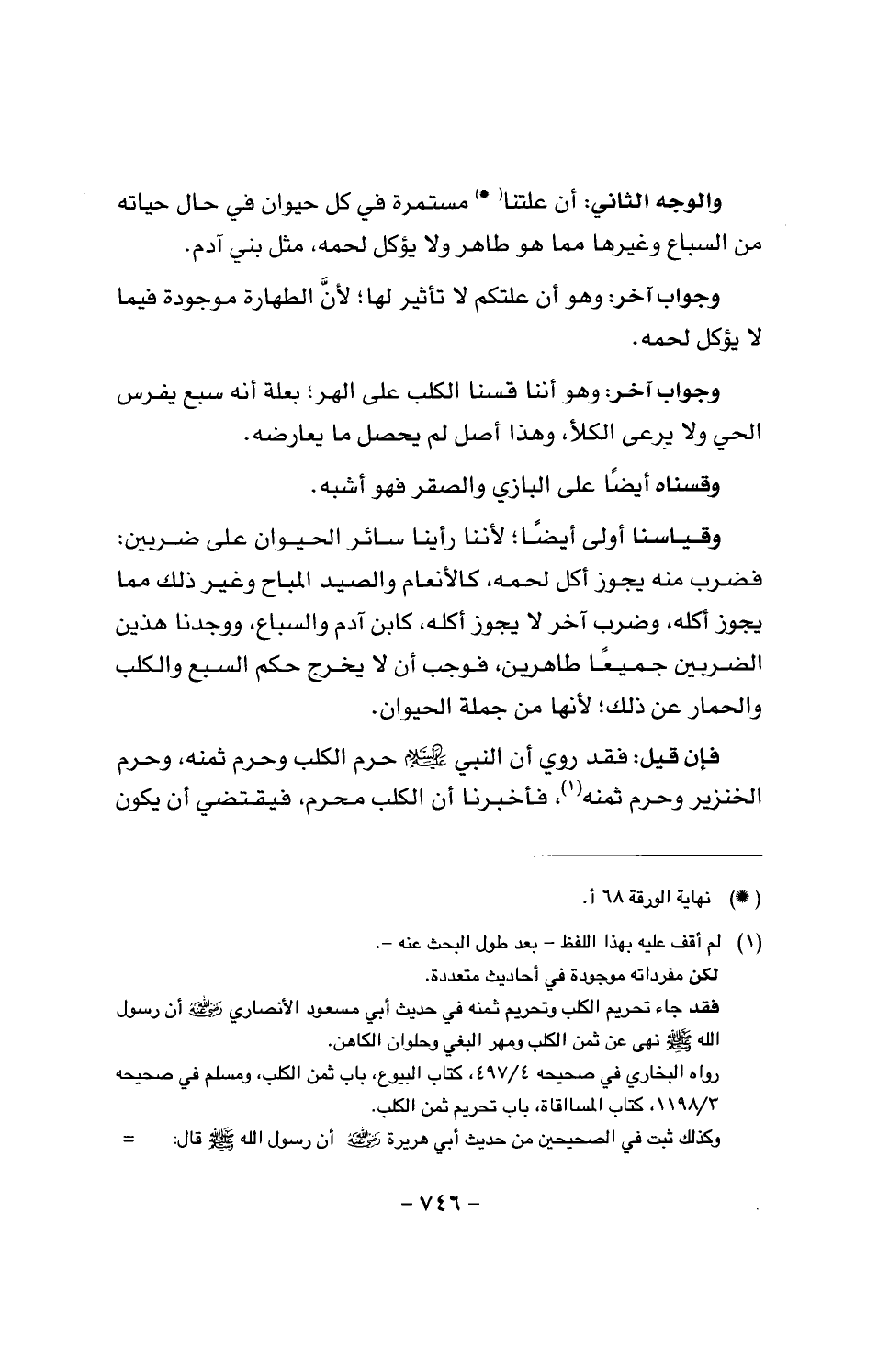 وجواب آخر: وهو أننا قسنا الكلب على الهر؛ بعلة أنه سبه يفرس الحي ولا يرعى الكلأ، وهذا أصل لم يحصل ما يعارضه.