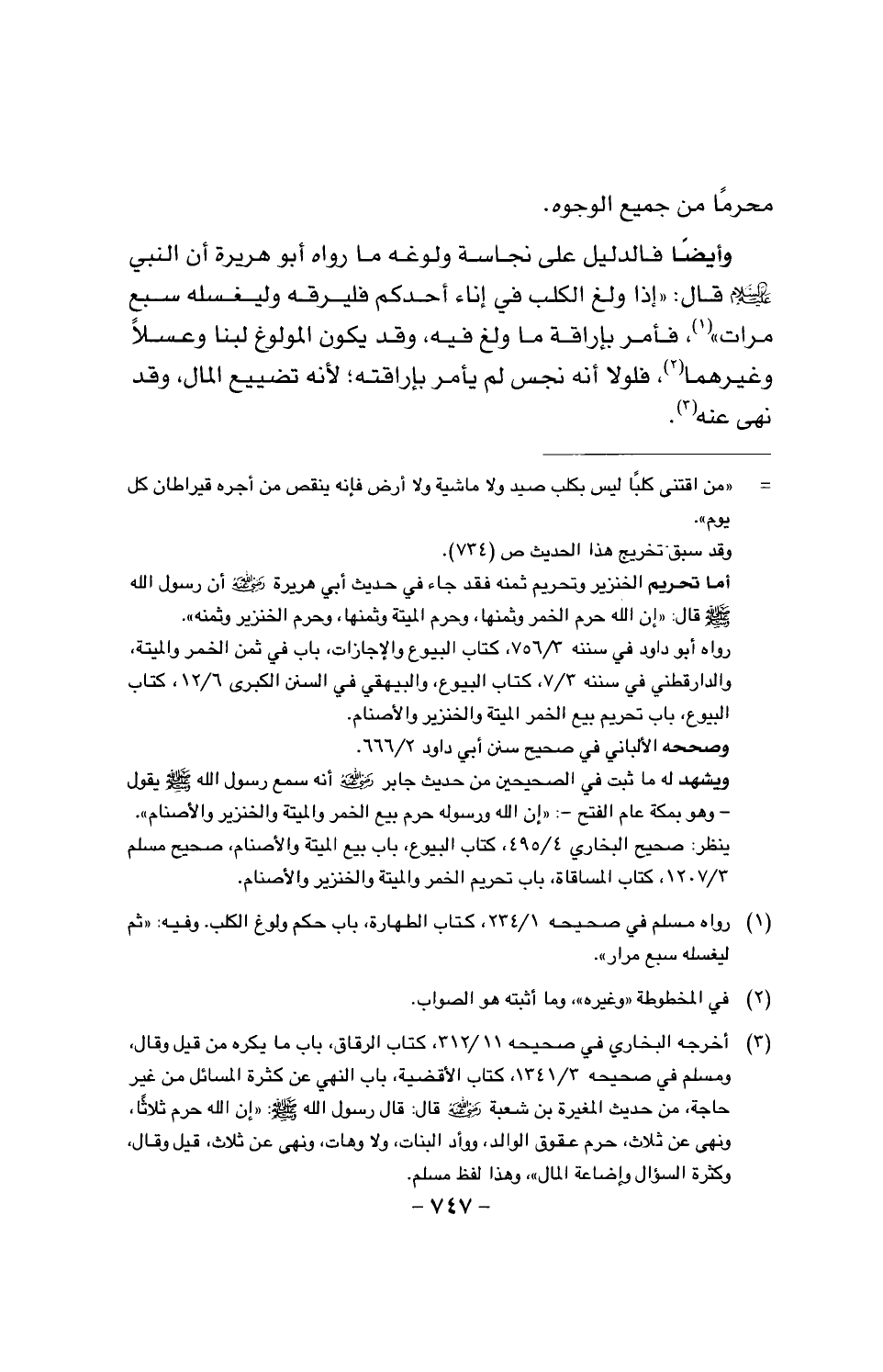 وأيضا فالدليل على نجاسة ولوغه ما رواه أبو هريرة أن النبي عليه السلام قال: (إذا ولغ الكلب في إناء فليرقه وليغسله سبع مرات)، فأمر بإراقة ما فيه، وقد يكون المولوغ لبنا وعسلا وغيرهما، فلولا أنه نجس لم يأمر بإراقته؛ لأنه تضييع المال، وقد نهى عنه.