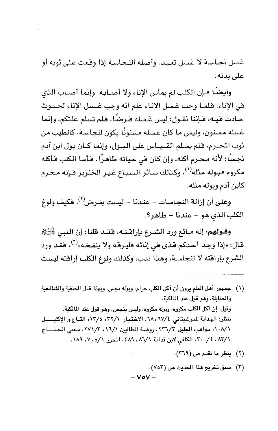 وعلى أن إزالة النجاسات - عندنا - ليست بفرض، فكيف ولوغ الكلب الذي هو - عندنا - طاهر؟.
