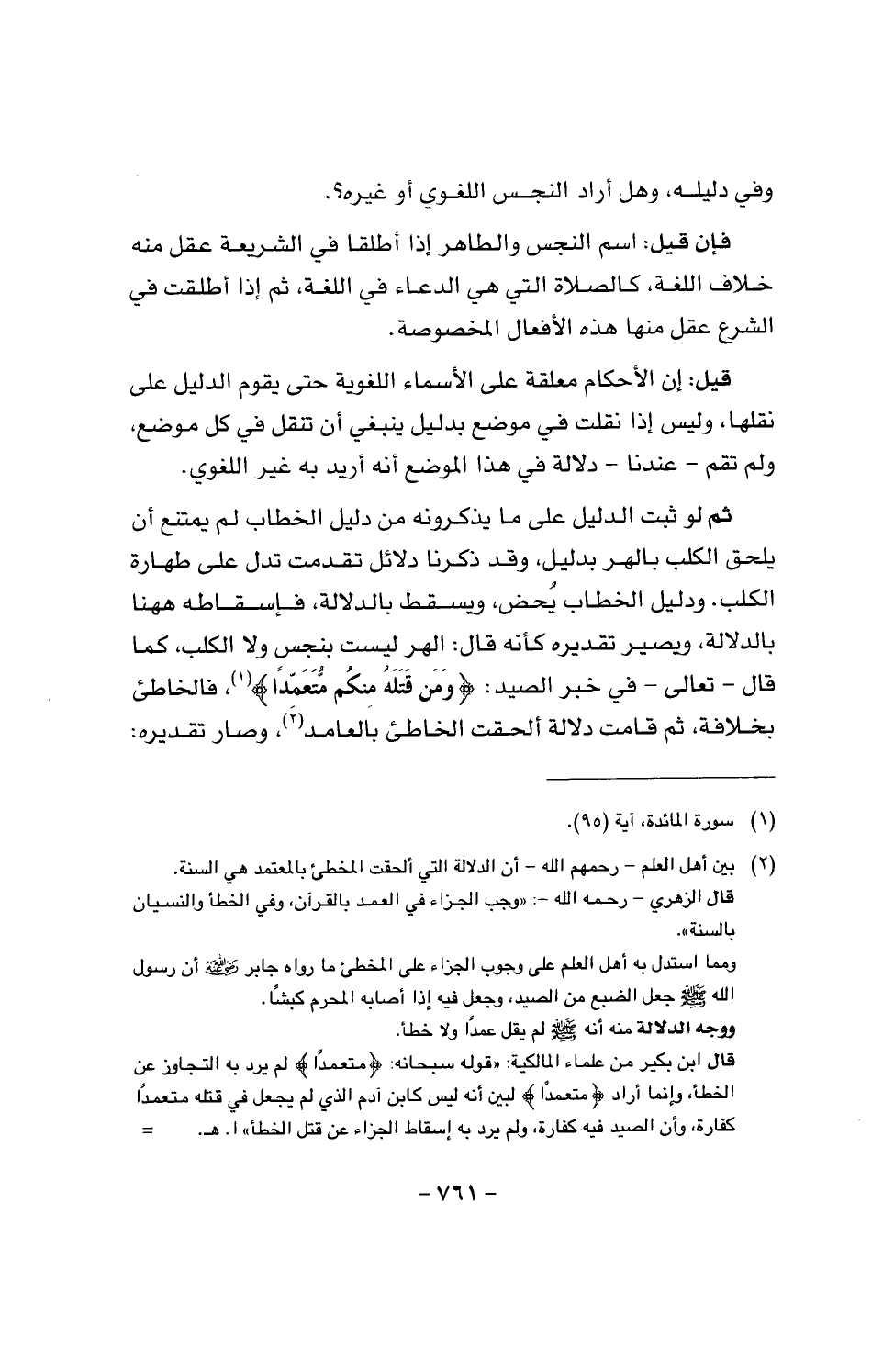 ثم لو ثبت الدليل على ما يذكرونه من دليل الخطاب لم يمتنع أن يلحق الكلب بالهر بدليل، وقد ذكرنا دلائل تقدمت تدل على طهارة الكلب، ودليل الخطاب يحض، ويسقط بالدلالة، فإسقاطه ههنا بالدلالة، ويصير تقديره كأنه قال: الهر ليست بنجس ولا الكلب، كما قال - تعالى - في خبر الصيد: {ومن قتله منكم متعمدا}، فالخاطئ بخلافه، ثم قامت دلالة ألحقت الخاطئ بالعامد، وصار تقديره: