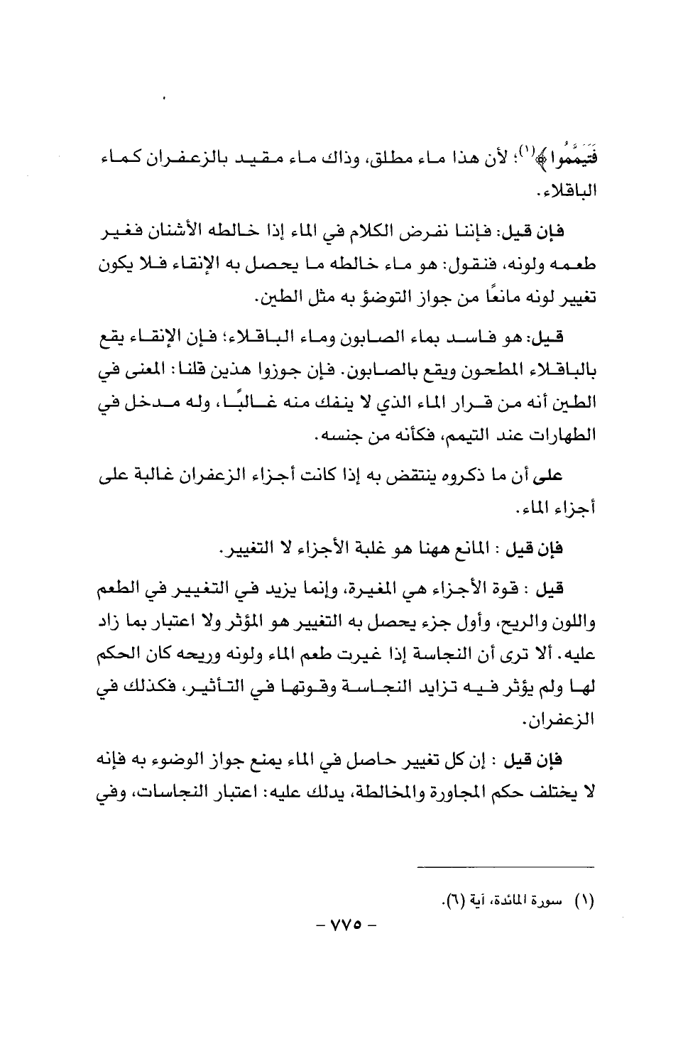 على أن ما ذكروه ينتقض به إذا كانت أجزاء الزعفران غالبة على أجزاء الماء.