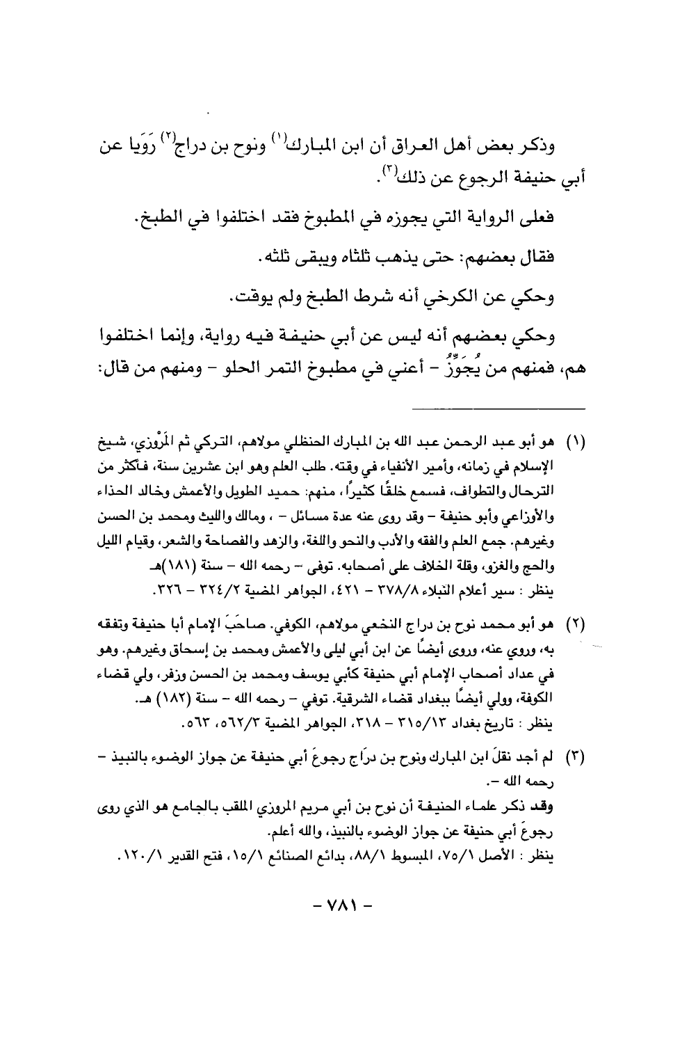 وذكر بعض أهل العراق أن ابن المبارك ونوح بن دارج رويا عن أبي حنيفة الرجوع عن ذلك.