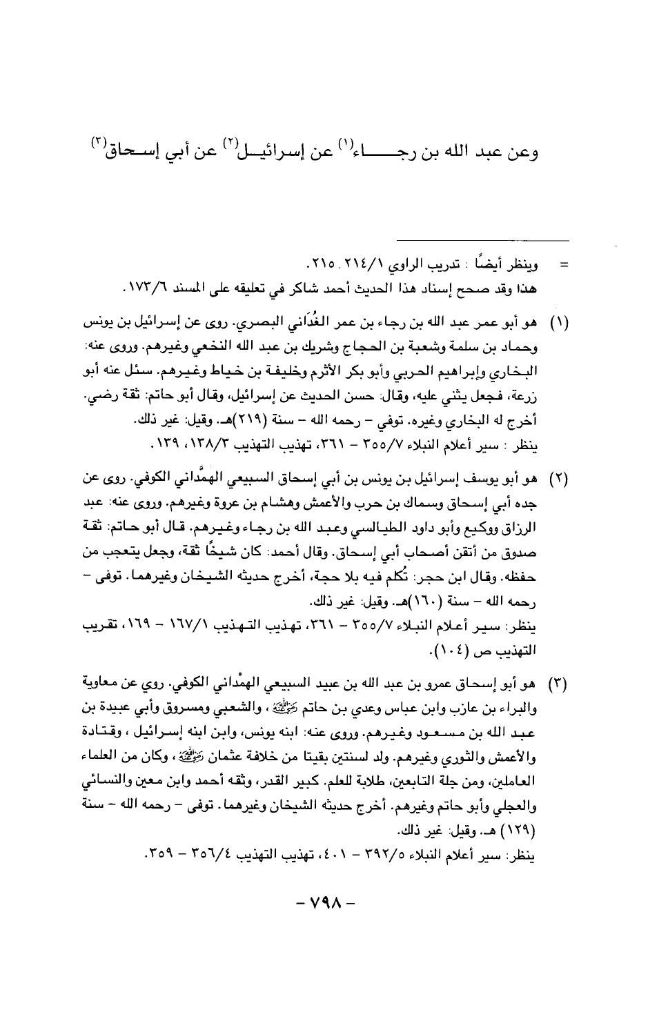وعن عبد الله بن رجاء عن إسرائيل عن أبي إسحاق