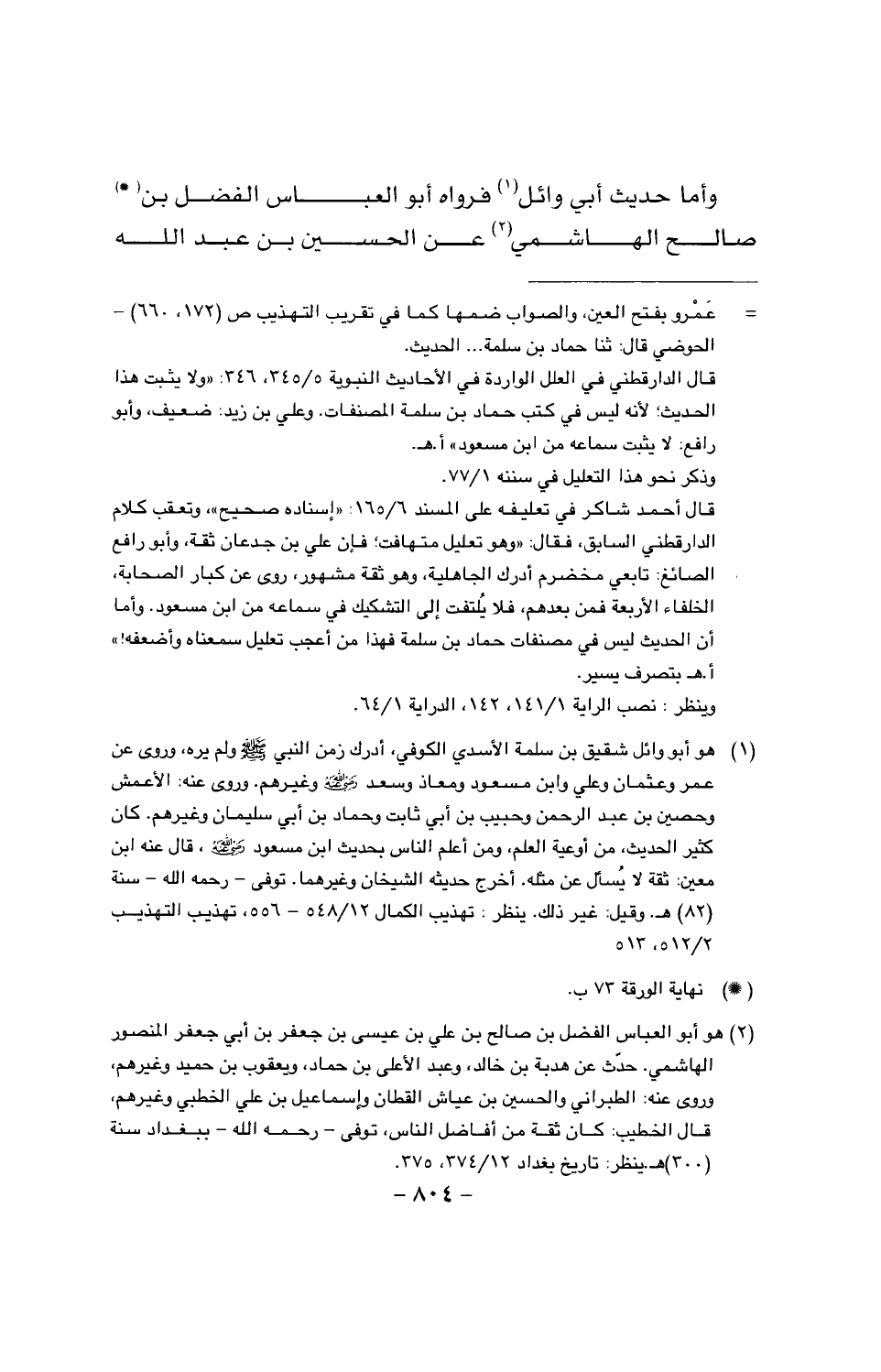 وأما حديث أبي وائل فرواه أبو العباس الفضل بن صالح الهاشمي عن الحسين بن عبد الله