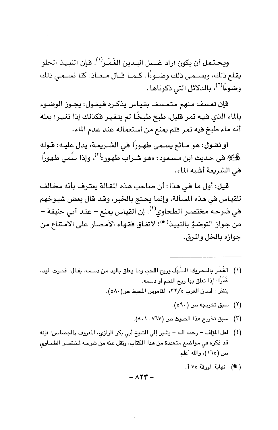 فإن تعسف منهم متعسف بقياس يذكره فيقول: يجوز الوضوء بالماء الذي فيه تمر قليل، طبخ طبخا لم يتغير فكذلك إذا تغير؛ بعلة أنه ماء طبخ فيه تمر فلم يمنع من استعماله عند عدم الماء.