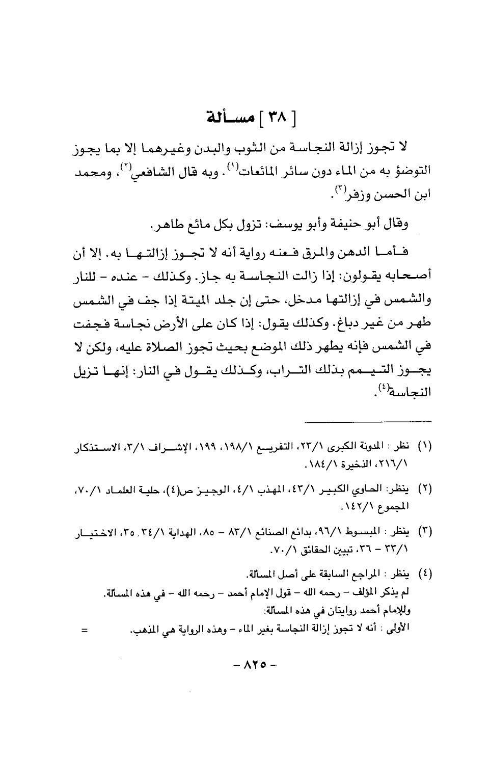 فأما الدهن والمرق فعنه رواية أنه لا تجوز إزالتها به. إلا أن أصحابه يقولون: إذا زالت النجاسة به جاز. وكذلك - عنده - للنار والشمس في إزالتها مدخل، حتى إن جلد الميتة إذا جف في الشمس طهر من غير دباغ. وكذلك يقول: إذا كان على الأرض نجاسة فجفت في الشمس فإنه يطهر ذلك الموضع بحيث تجوز الصلاة عليه، ولكن لا يجوز التيمم بذلك التراب، وكذلك يقول في النار: إنها تزيل النجاسة.