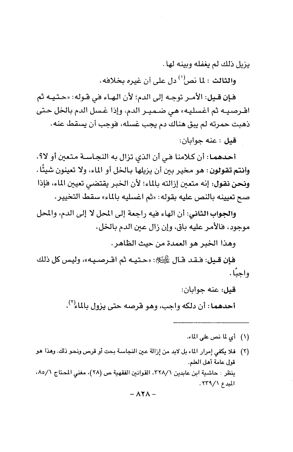 والجواب الثاني: أن الهاء فيه راجعة إلى المحل لا إلى الدم، والمحل موجود، فالأمر عليه باق، وإن زال عين الدم بالخل.