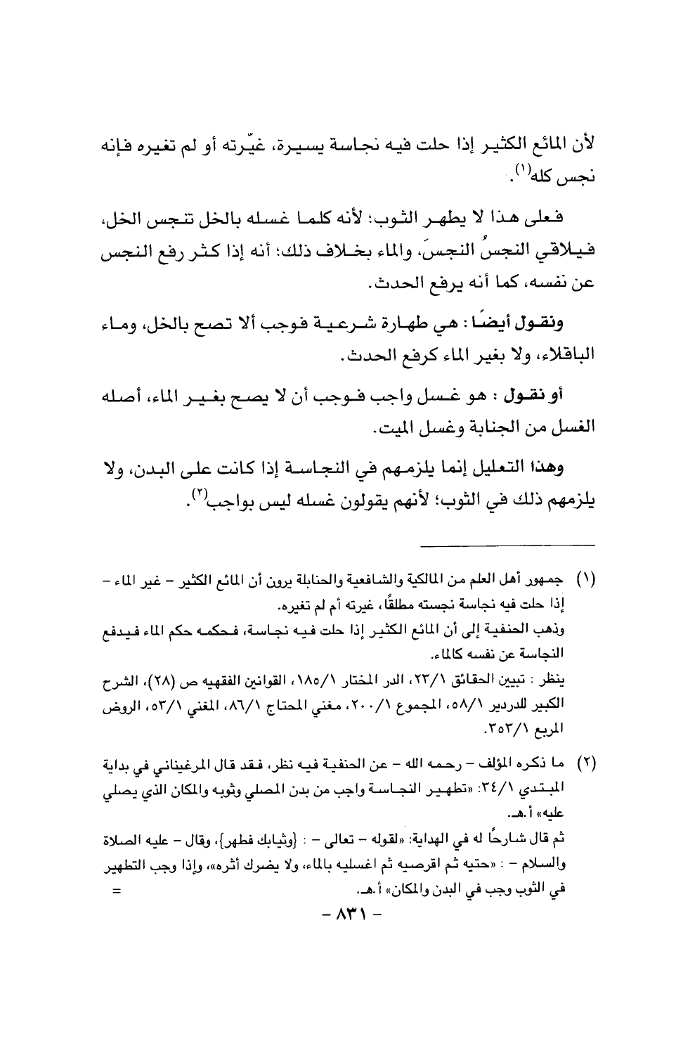 وهذا التعليل إنما يلزمهم في النجاسة إذا كانت على البدن، ولا يلزمهم ذلك في الثوب؛ لأنهم يقولون غسله ليس بواجب.