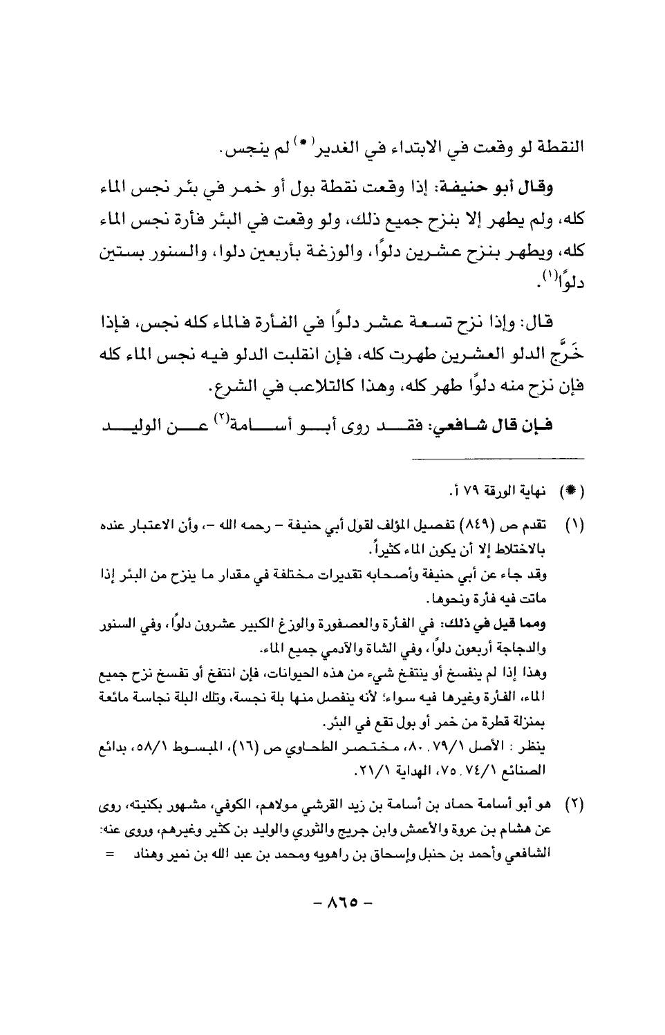 قال: وإذا نزح تسعة عشر دلوا في الفأرة فالماء كله نجس، فإذا خرج الدلو العشرين طهرت كله، فإن انقلبت الدلو فيه نجس الماء كله فإن نزح منه دلوا طهر كله، وهذا كالتلاعب في الشرع.