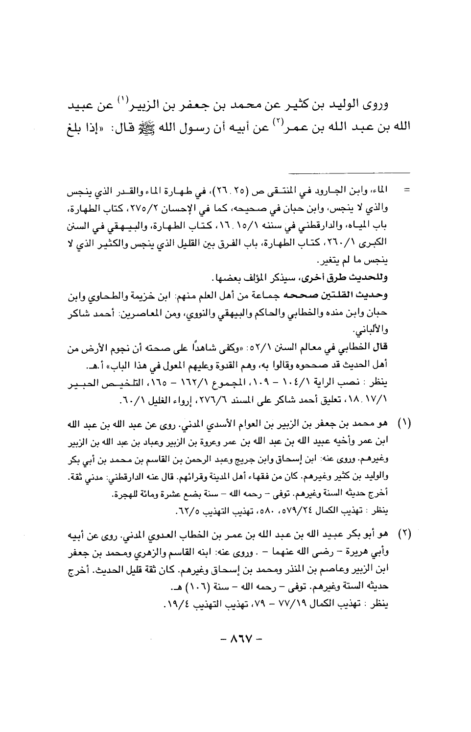 روى الوليد بن كثير عن محمد بن جعفر بن الزبير عن عبيد الله بن عبد الله بن عمر عن أبيه أن رسول الله صَلَّى اللَّهُ عَلَيْهِ وَسَلَّمَ قال: (إذا بلغ