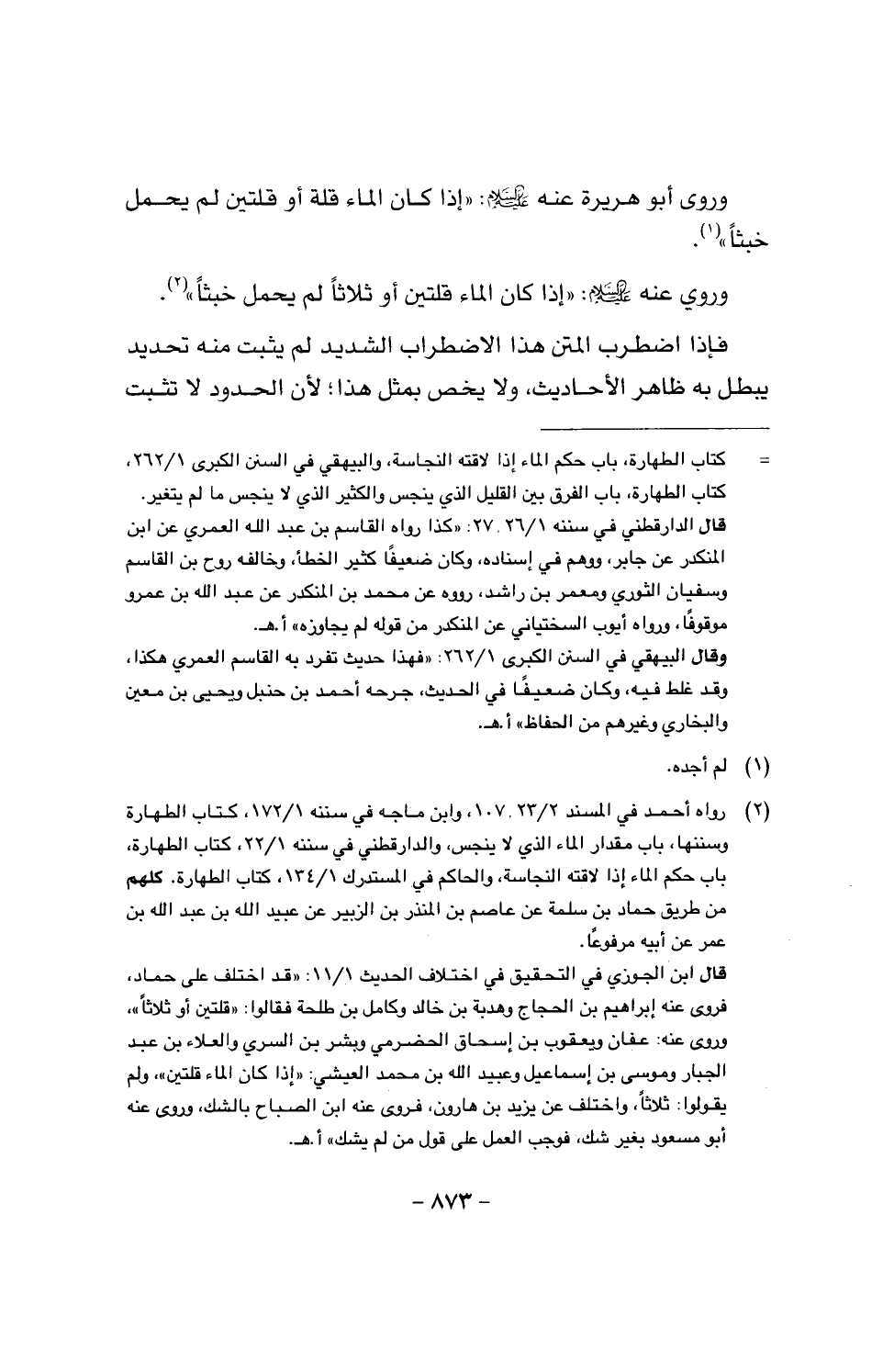 وروى أبو هريرة عنه عليه السلام: (إذا كان الماء قلة أو قلتين لم يحمل خبثا) ,
