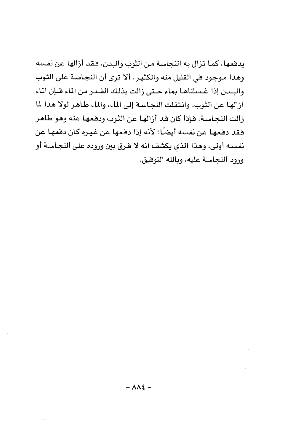 يدفعها كما تزال به النجاسة من الثوب والبدن، فقد أزالها عن نفسه وهذا موجود في القليل منه والكثير. ألا ترى أن النجاسة على الثوب والبدن إذا غسلناها بماء حتى زالت بذلك القدر من الماء فإن الماء أزالها عن الثوب، وانتقلت النجاسة إلى الماء، والماء طاهر لولا هذا لما زالت النجاسة، فإذا كان قد أزالها عن الثوب ودفعها عنه وهو طاهر فقد دفعها عن نفسه أيضا؛ لأنه إذا دفعها عن غيره كان دفعها عن نفسه أولى، وهذا الذي يكشف أنه لا فرق بين وروده على النجاسة أو ورود النجاسة عليه، وبالله التوفيق.