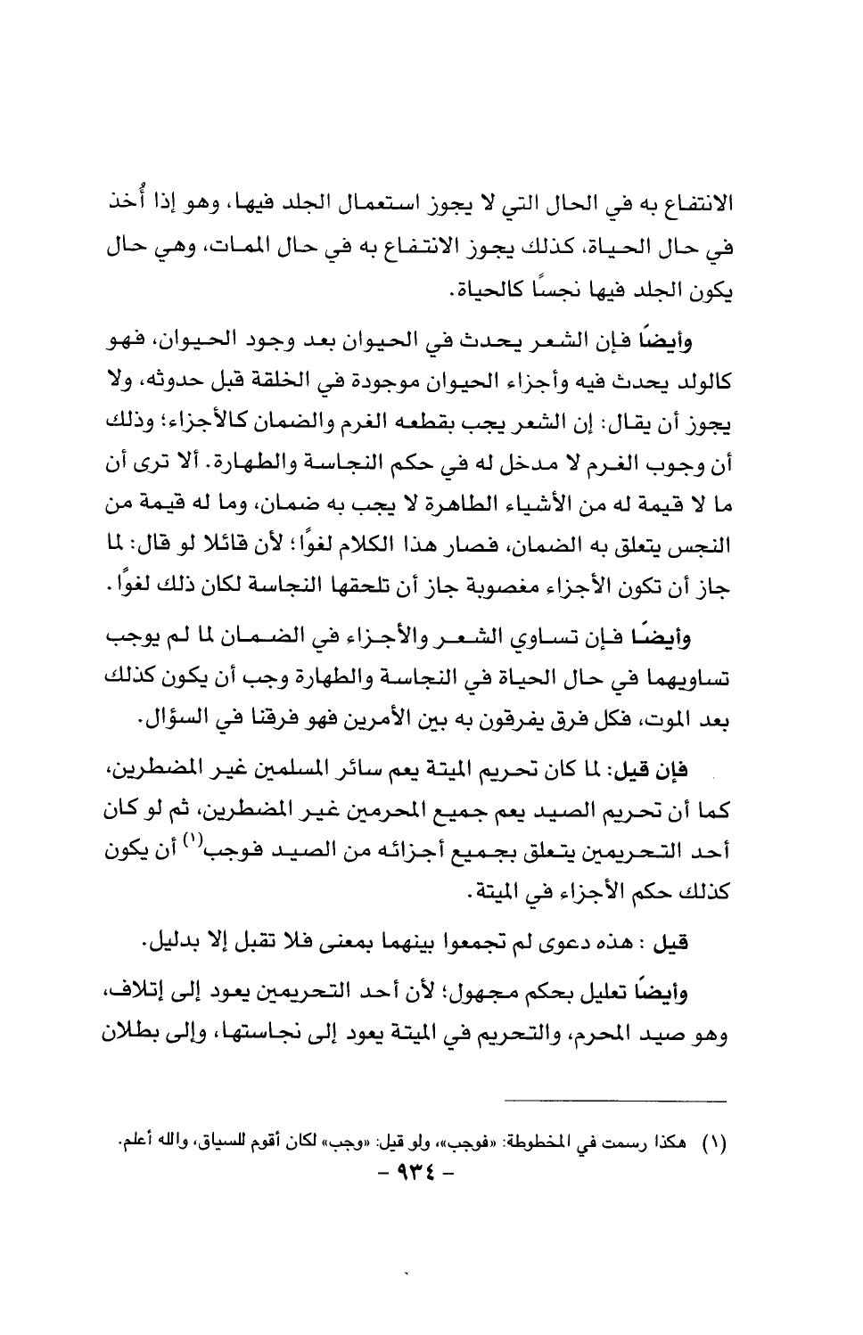 وأيضا فإن تساوي الشعر والأجزاء في الضمان لما لم يوجب تساويهما في حال الحياة في النجاسة والطهارة وجب أن يكون كذلك بعد الموت، فكل فرق يفرقون به بين الأمرين فهو فرقنا في السؤال.