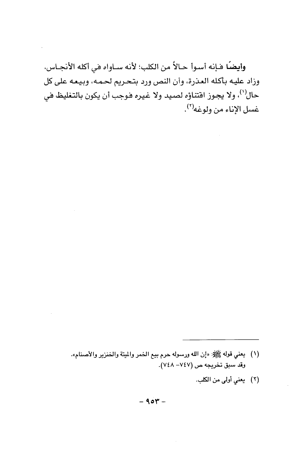 وأيضا فإنه أسوأ حالا من الكلب؛ لأنه ساواه في أكله الأنجاس، وزاد عليه بأكله العذرة، وأن النص ورد بتحريم لحمه، وبيعه على كل حال، ولا يجوز اقتناؤه لصيد ولا غيره فوجب أن يكون بالتغليظ في غسل الإناء من ولواغه.