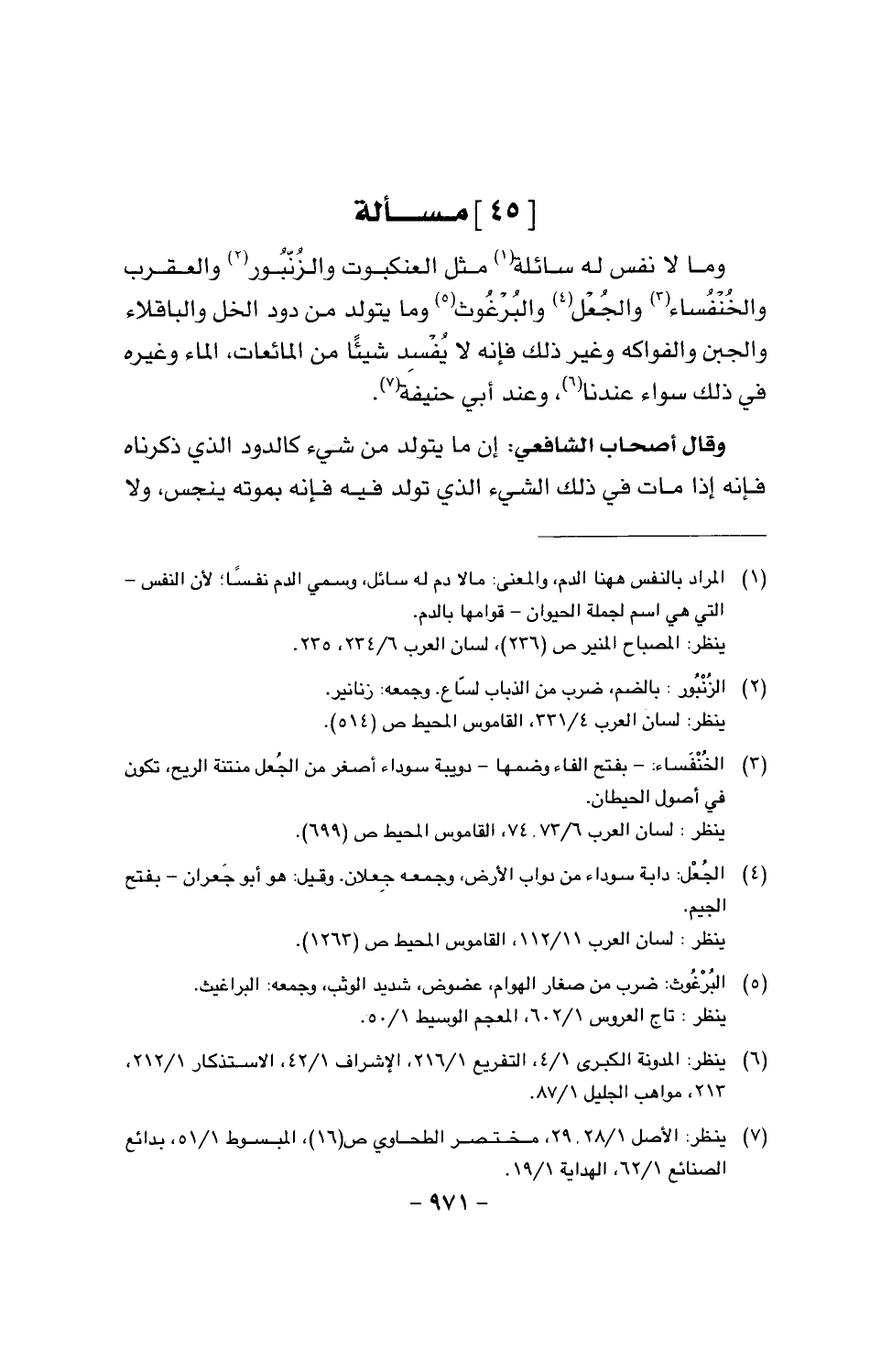 وما لا نفس له سائلة مثل العنكبوت والزنبور والعقرب والخنفساء والجعل والبرغوث وما يتولد من دود الخل والباقلاء والجبن والفواكه وغير ذلك فإنه لا يفسد شيئا من المائعات، الماء وغيره في ذلك سواء عندنا، وعند أبي حنيفة.