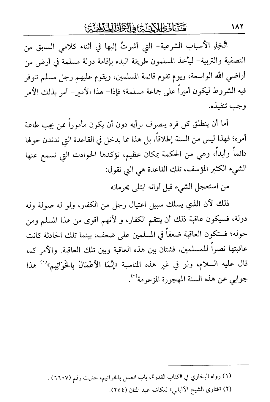 ثم يفعلوا ذلك، هل يحصدون شيئا؟ هل ينهزم العدو؟ أم يزداد العدو شدة على هؤلاء الذين يقومون بهذه التفجيرات، كما هو مشاهد الآن في دولة اليهود، حيث لم يزدادوا بمثل هذه الأفعال إلا تمسكا بعنجهيتهم، بل إنا نجد أن الدولة اليهودية في الاستفتاء الأخير نجح فيها (اليمينيون) الذين يريدون القضاء على العرب.