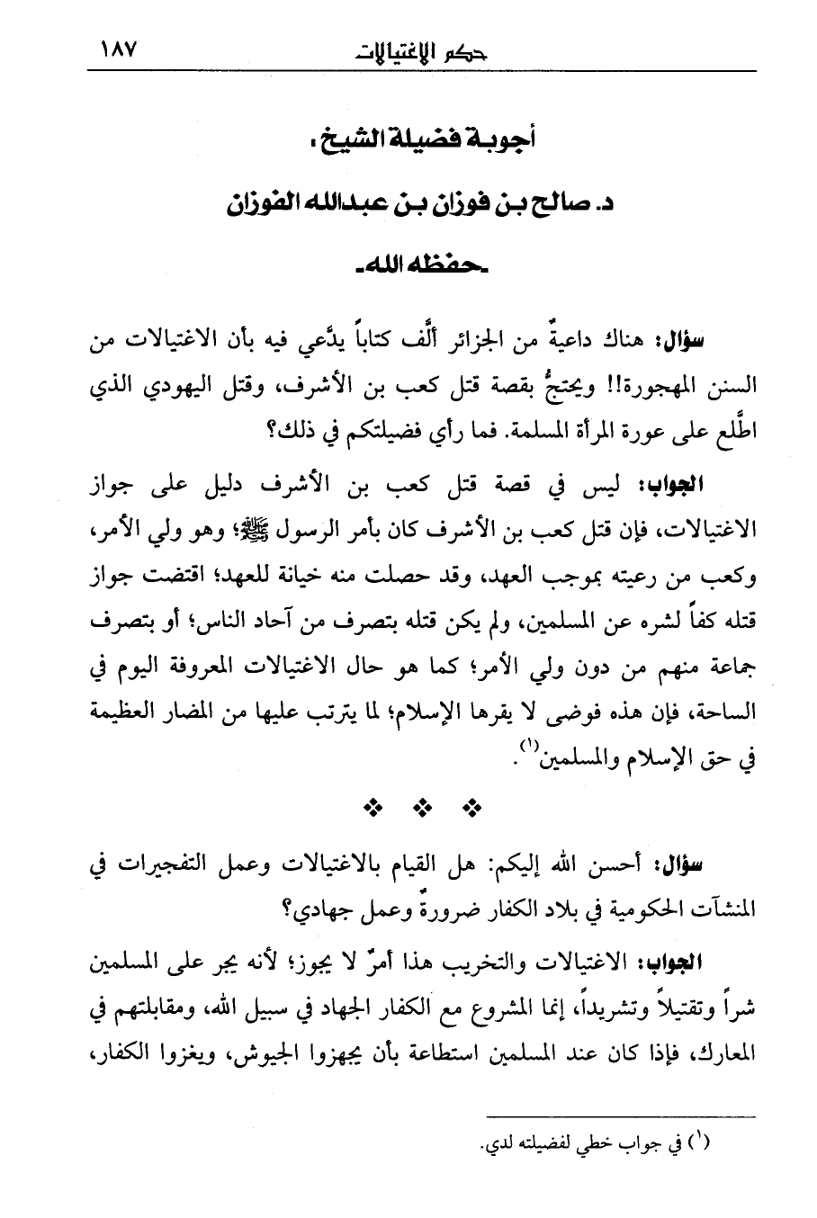 " فما ينبغي لك يا فقيه أن تبادر إلى تكفير المسلم إلا ببرهان قطعي، كما لا يسوغ لك أن تعتقد العرفان والولاية فيمن قد تبرهن زغله، وانهتك باطنه وزندقته، فلا هذا ولا هذا، بل العدل: أن من رآه المسلمون صالحا محسنا فهو كذلك؛ لأنهم شهداء الله بأرضه، إذ الأمة لا تجتمع على ضلالة، من رآه المسلمون فاجرا أو منافقا أو مبطلا فهو كذلك.