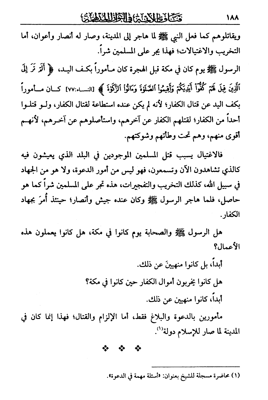 المسلمين ومبتدعيهم يذمونه ويحطون عليه، وما من رأس في التجهم والرفض إلا وله أناس ينتصرون له ويذبون عنه ويدينون بقوله بهوى وجهل، وإنما العبرة بقول الجمهور؛ الخالين من الهوى والجهل، المتصفين بالورع والعلم، فتدبر - يا عبد الله - نحلة الحلاج الذي هو من رءوس القرامطة، ودعاة الزندقة وأنصف وتورع، واتق ذلك، وحاسب نفسك، فإن تبرهن لك أن شمائل هذا المرء شمائل عدو للإسلام، محب للرئاسة، حريص على الظهور بباطل أو بحق؛ فتبرأ من نحلته، وإن تبرهن لك والعياذ بالله أنه كان - والحالة هذه - محقا هاديا مهديا فجدد إسلامك، واستغث بربك أن يوفقك للحق، وأن يثبت قلبك على دينه، فإنما الهدى نور يقذفه الله في قلب عبده المسلم، ولا قوة إلا بالله، وإن شككت ولم تعرف حقيقته، وتبرأت مما رمي به، أرحت نفسك ولم يسألك الله عنه أصلا (¬1) ".